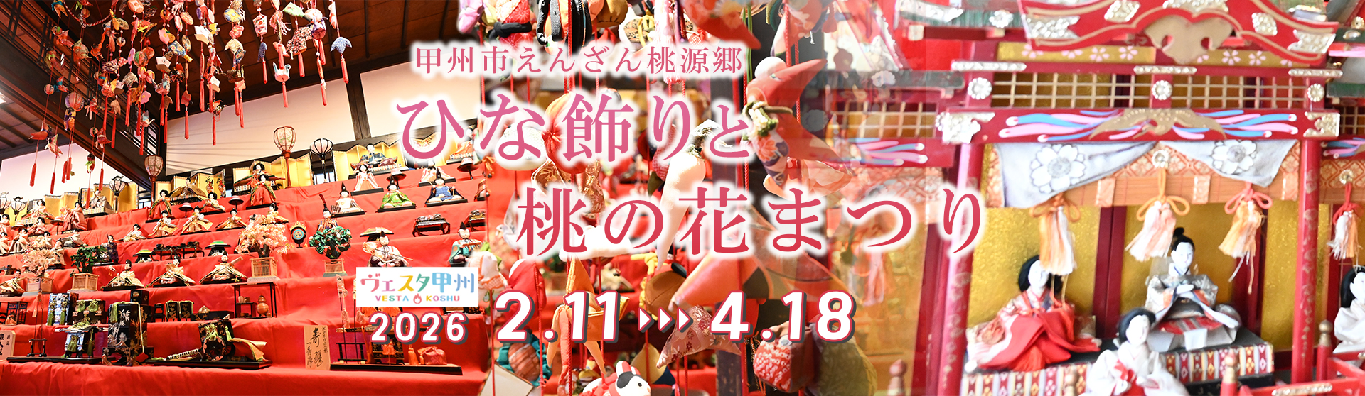 - 2025.12.26第24回「甲州市えんざん桃源郷ひな飾りと桃の花まつり」2月11日開幕!