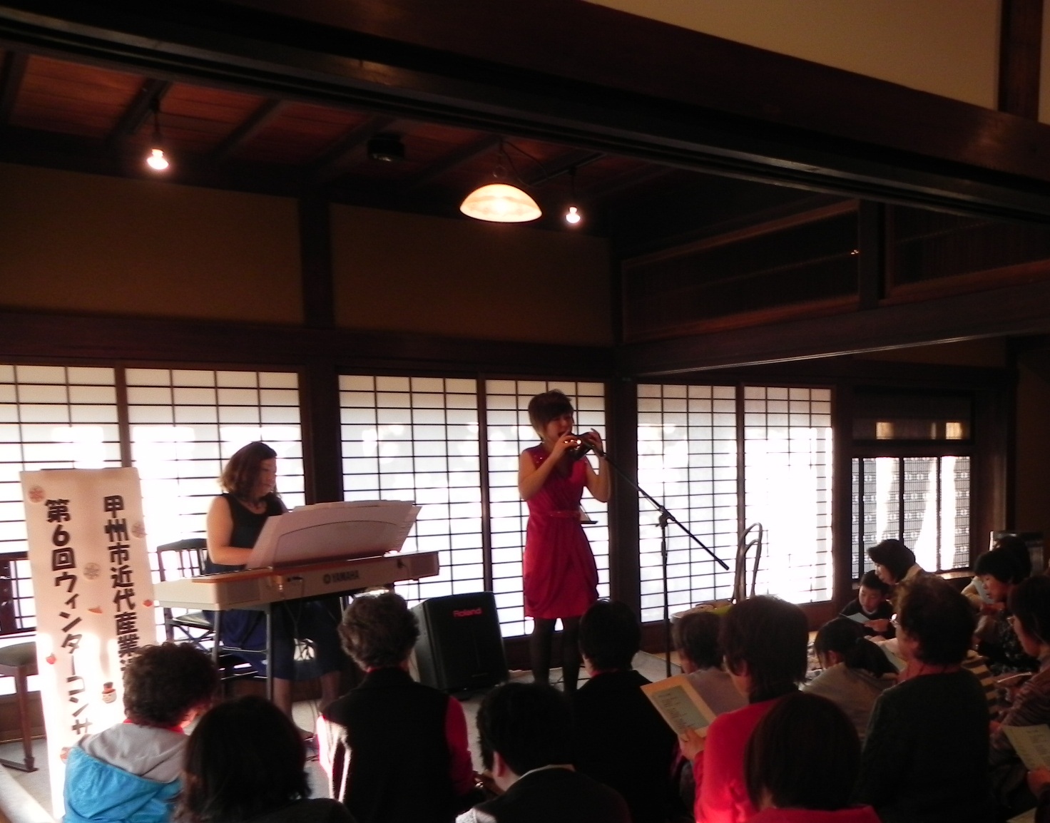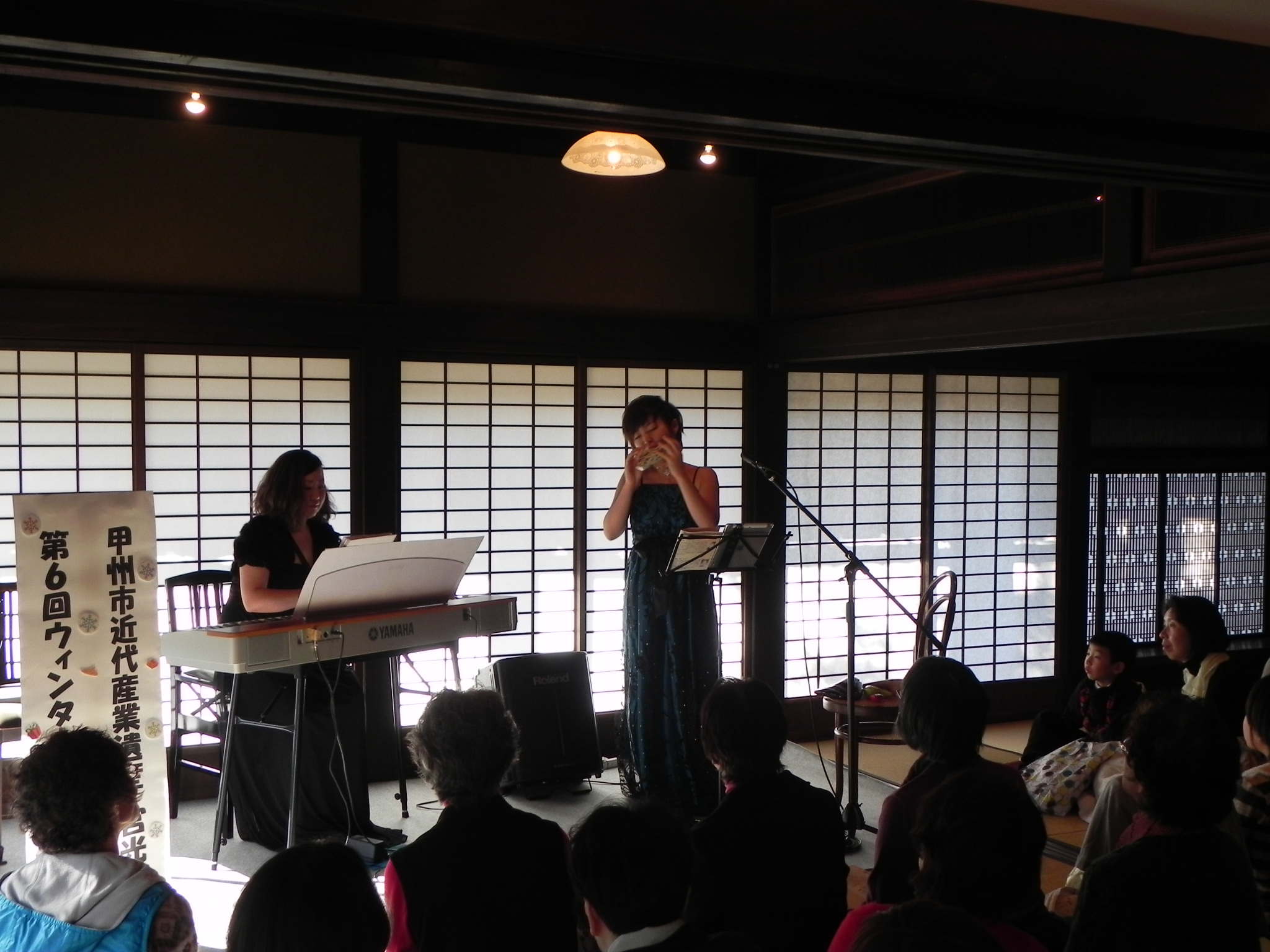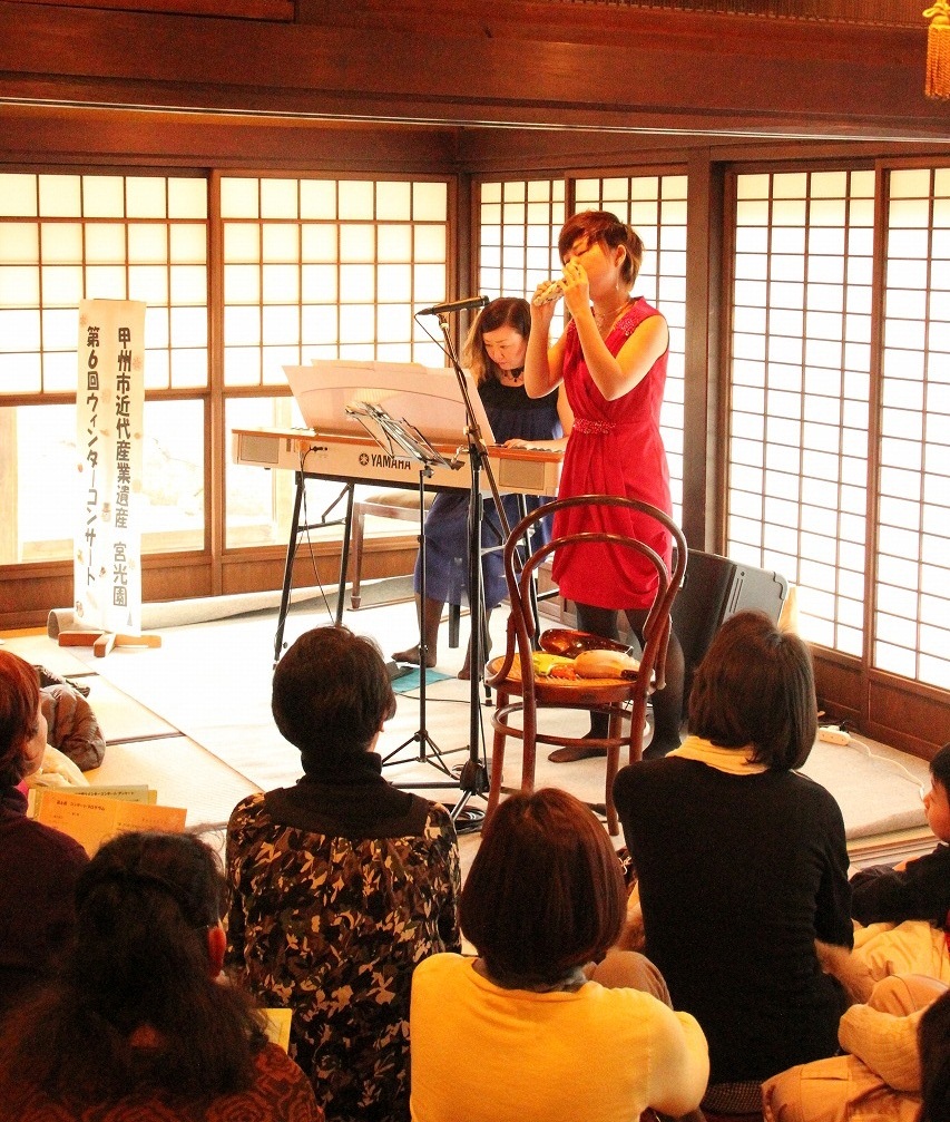 宮光園第6回ウィンターコンサートを開催しました! ページの内容を印刷 記事番号: 1-2305 公開日 2013年12月26日 更新日 2014年01月06日 ■12月21日(土)に近代産業遺産『宮光園』で「第6回ウィンターコンサート」を開催しました。 オカリーナ界の新星「弓場さつき」さんとピアノの「後藤智美」さんによるオカリーナのアレンジ演奏曲『アヴェ・マリア』、『ディズニースペシャルメドレー』、『クリスマスメドレー』など13曲を披露しました。 第2部の最初の演奏では、サプライズで弓場さつきさんの教え子とコラボをし、会場内が和やかなムードに包まれました。 コンサートの締めくくりとして、『きよしこの夜』を全員で合唱しました。 聖なるクリスマス前のひと時、清らかなオカリーナの音色とピアノの伴奏に、訪れた60人の聴衆が酔いしれました。 お問い合わせ先 観光商工課郵便番号:404-8501住所:山梨県甲州市塩山上於曽1085番地1TEL:課代表(0553-32-5091)/企画・交流担当(0553-32-1000)/施設管理担当(0553-32-5000)/ワイン・商工振興担当(0553-32-5091) ツイート シェア 前のページへ戻る このページについてお聞かせください 甲州市へのご意見・ご要望はこちらから甲州市へのご意見ご要望は下記の「ご意見・ご要望」フォームからお願いします。本ページへのお問い合わせの場合は、本ページのURLを添えて送信してください。ご意見・ご要望