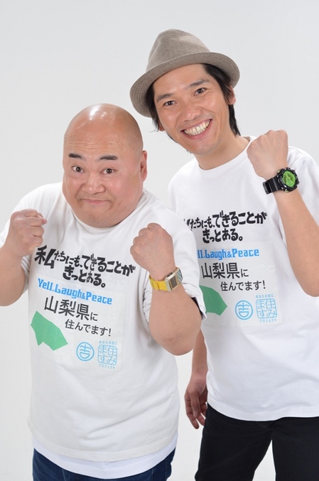 吉本興業では2011年、全国47都道府県に同社所属のお笑い芸人を住まわせ、地域密着型の活動を推進する企画、「あなたの街に住みますプロジェクト」を発足しました。 山梨県には現在、「ぴっかり高木といしいそうたろう」が住みます芸人として、各種大会や催し物、テレビやラジオなど通じて、地域を盛り上げています。特に、ぴっかり高木さんは甲州市の市民となり、地域に笑いを届け、地域を元気する活動を行っています。