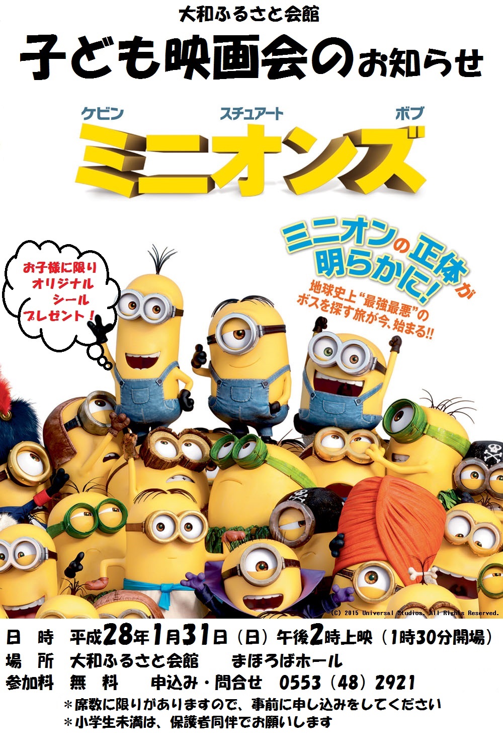 昨年の映画『妖怪ウォッチ』に引き続き、今回は映画『ミニオンズ』を上映いたします!