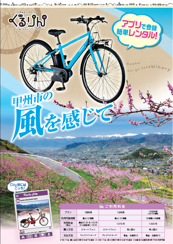 設置場所は今までと変わらずJR塩山駅・JR勝沼ぶどう郷駅・甲州市役所勝沼支所の3か所で、「シティータイプ(赤の『ぐるりん』)も変わらず利用できます。