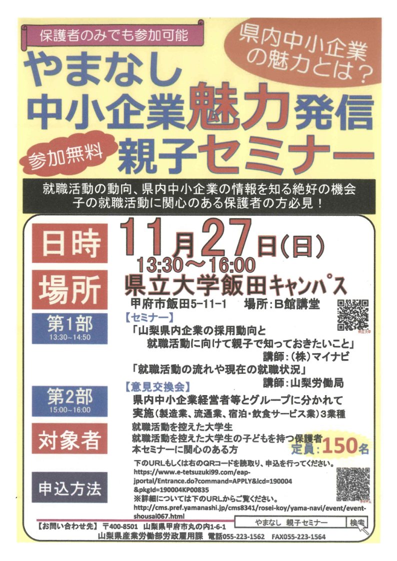 やまなし中小企業魅力発信親子セミナー開催 ページの内容を印刷 記事番号: 1-1287 公開日 2016年10月31日 リーフレット(PDF) お問い合わせ先 農林振興課郵便番号:404-8501住所:山梨県甲州市塩山上於曽1085番地1TEL:果樹農林担当・農地担当(0553-32-5092) ツイート シェア 前のページへ戻る このページについてお聞かせください 甲州市へのご意見・ご要望はこちらから甲州市へのご意見ご要望は下記の「ご意見・ご要望」フォームからお願いします。本ページへのお問い合わせの場合は、本ページのURLを添えて送信してください。ご意見・ご要望