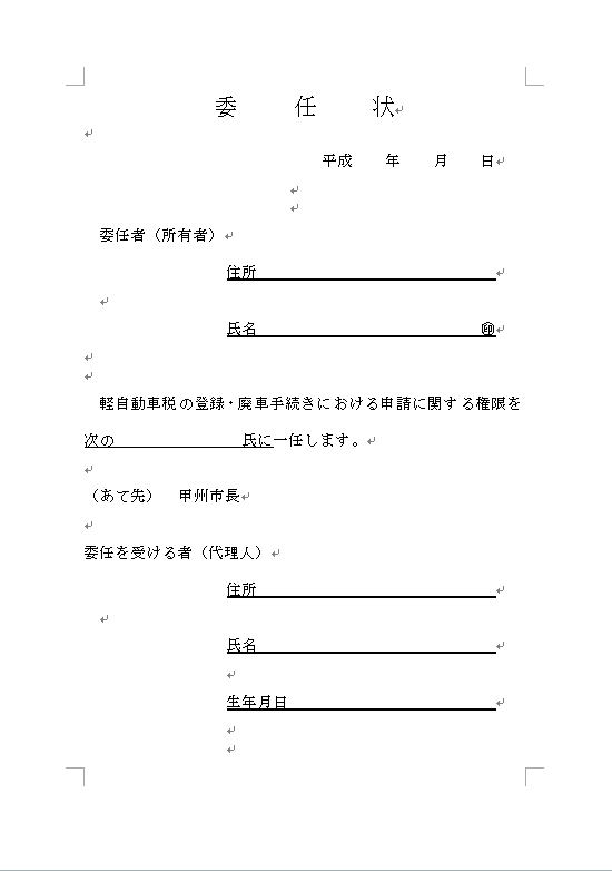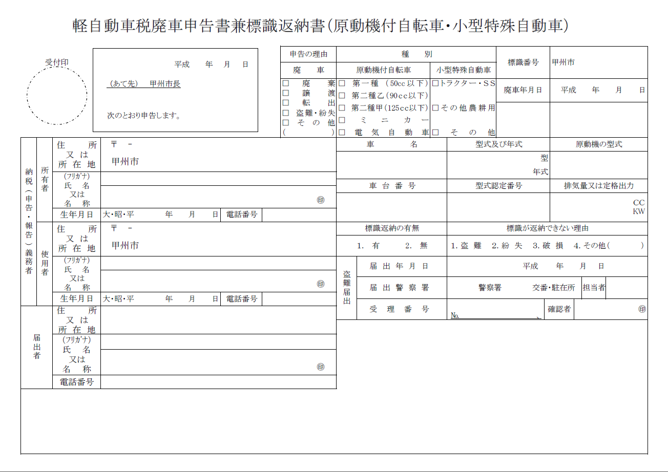 前住所地のナンバーの標識返納を行ってから、甲州市のナンバーを取得します。