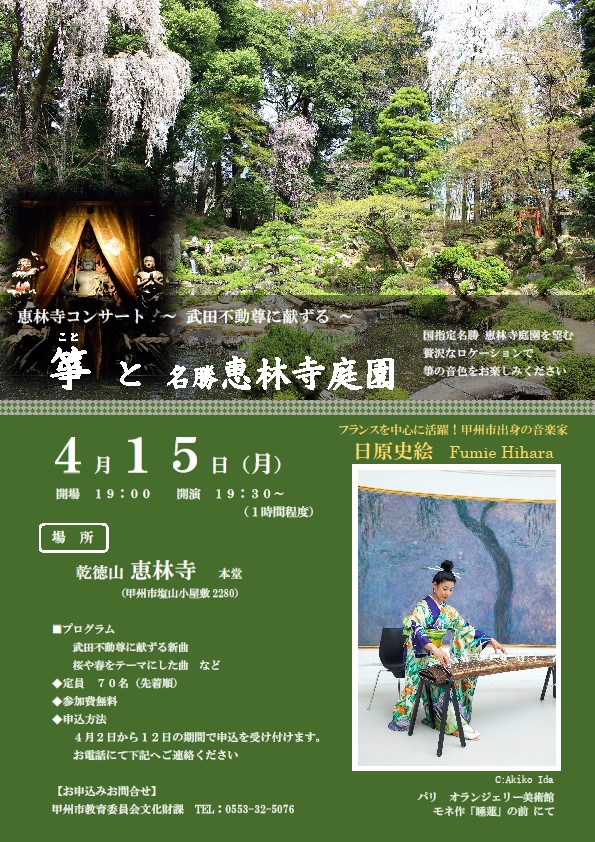 国指定名勝 恵林寺庭園を望む贅沢なロケーションで箏(こと)の音色をお楽しみください!