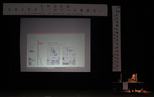 と題して講演。アメリカ軍が収集した日本兵の日記や遺書など、アメリカに眠ってい