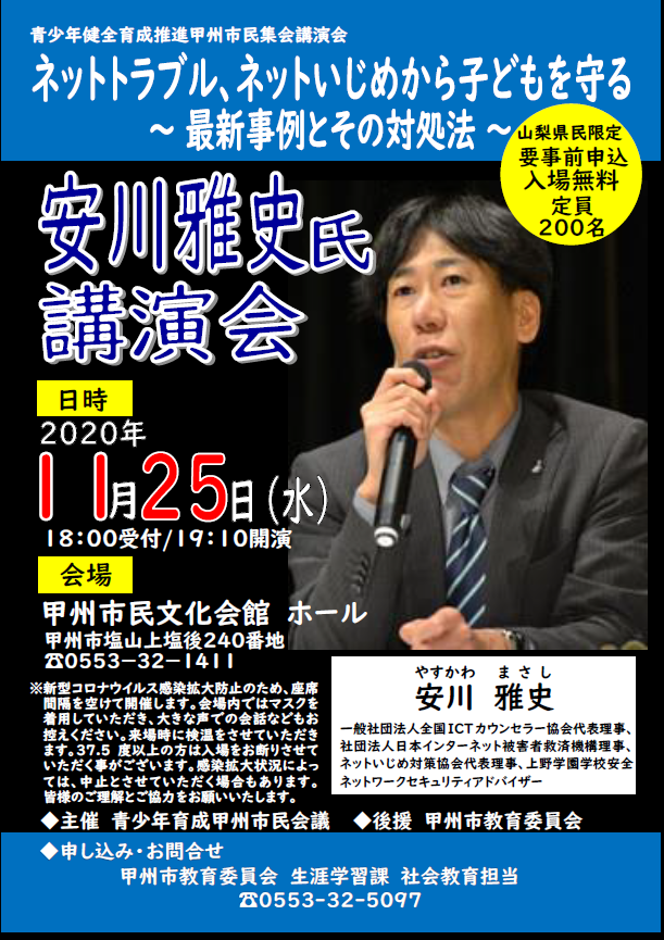 (3)講演会「ネットトラブル、ネットいじめから子どもを守る」~最新事例とその対処法~