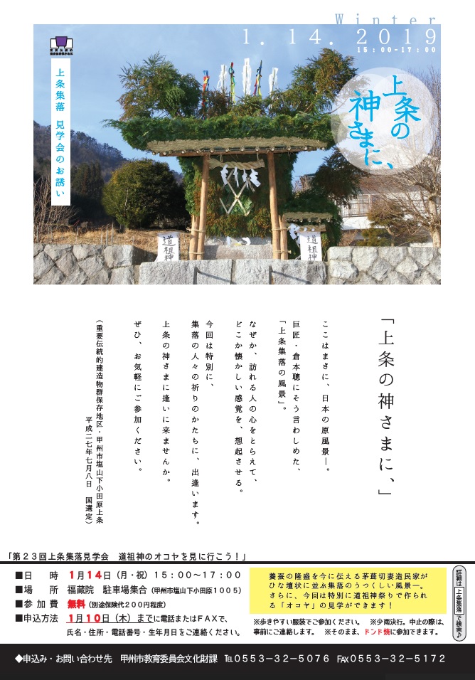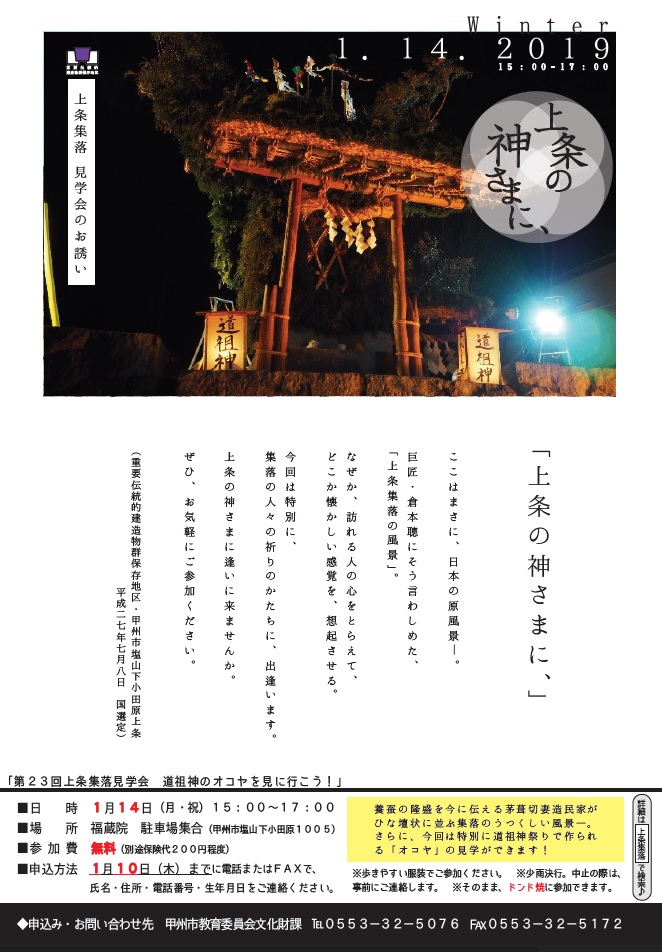 「第23回上条集落見学会 道祖神のオコヤを見に行こう!」を開催します。