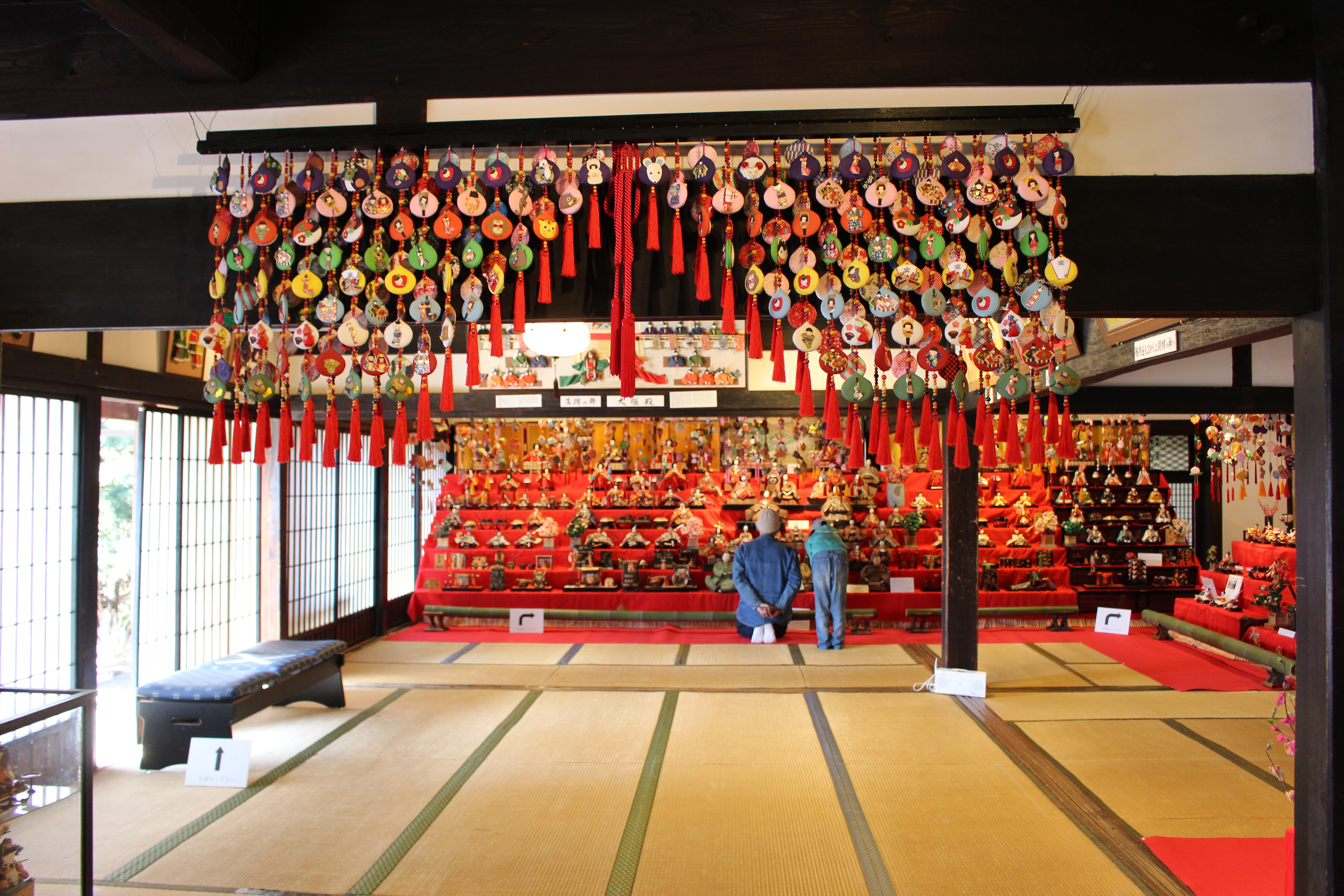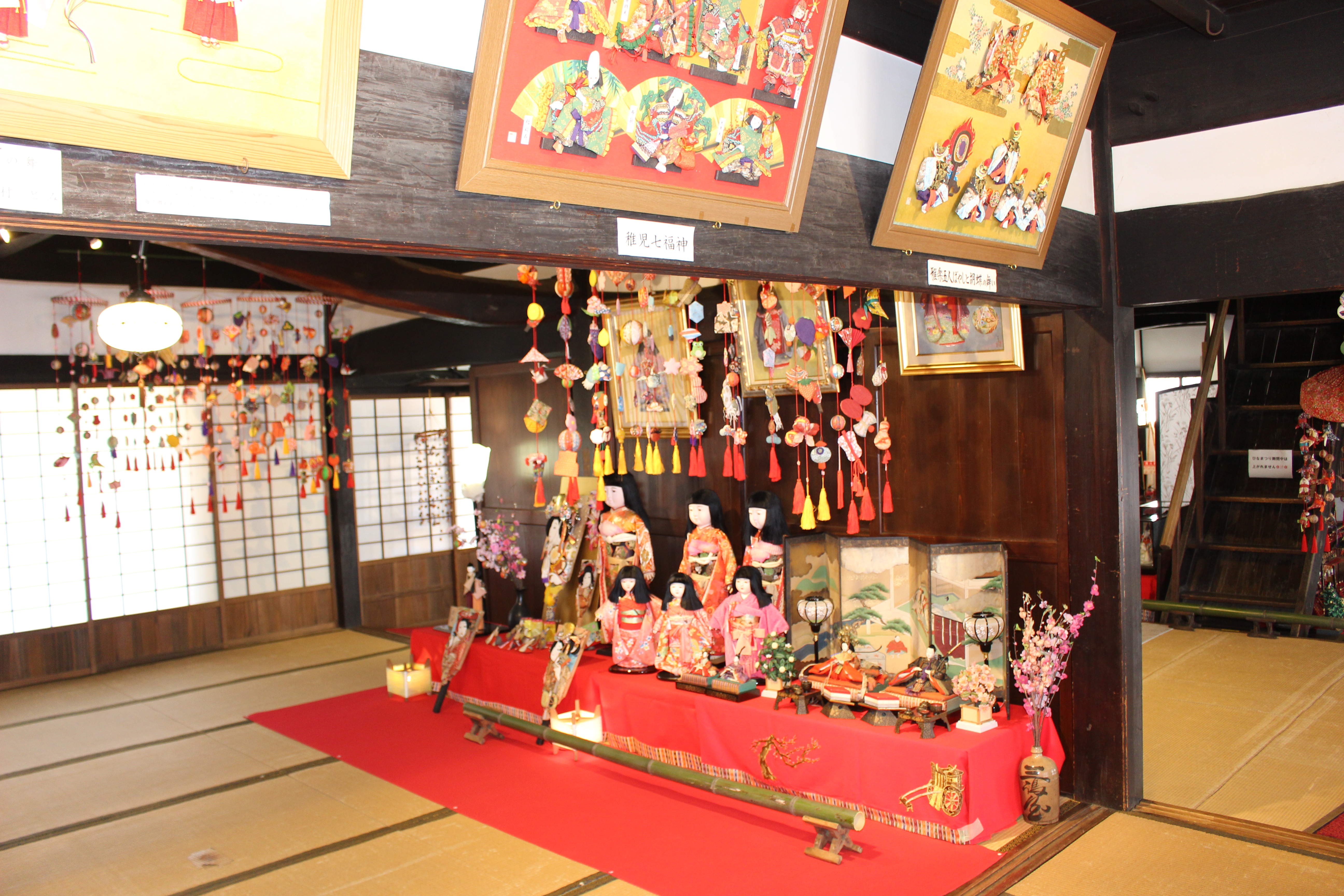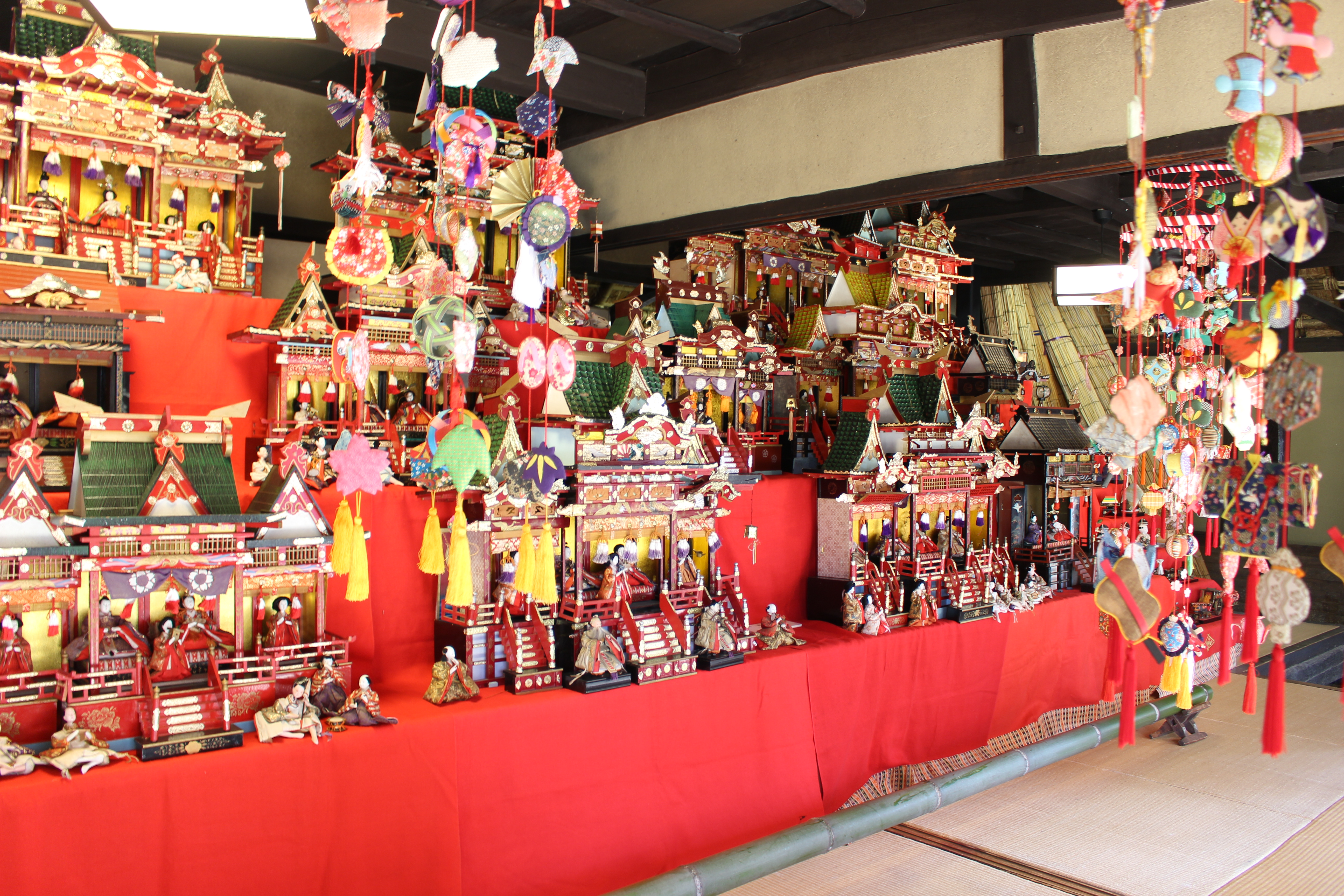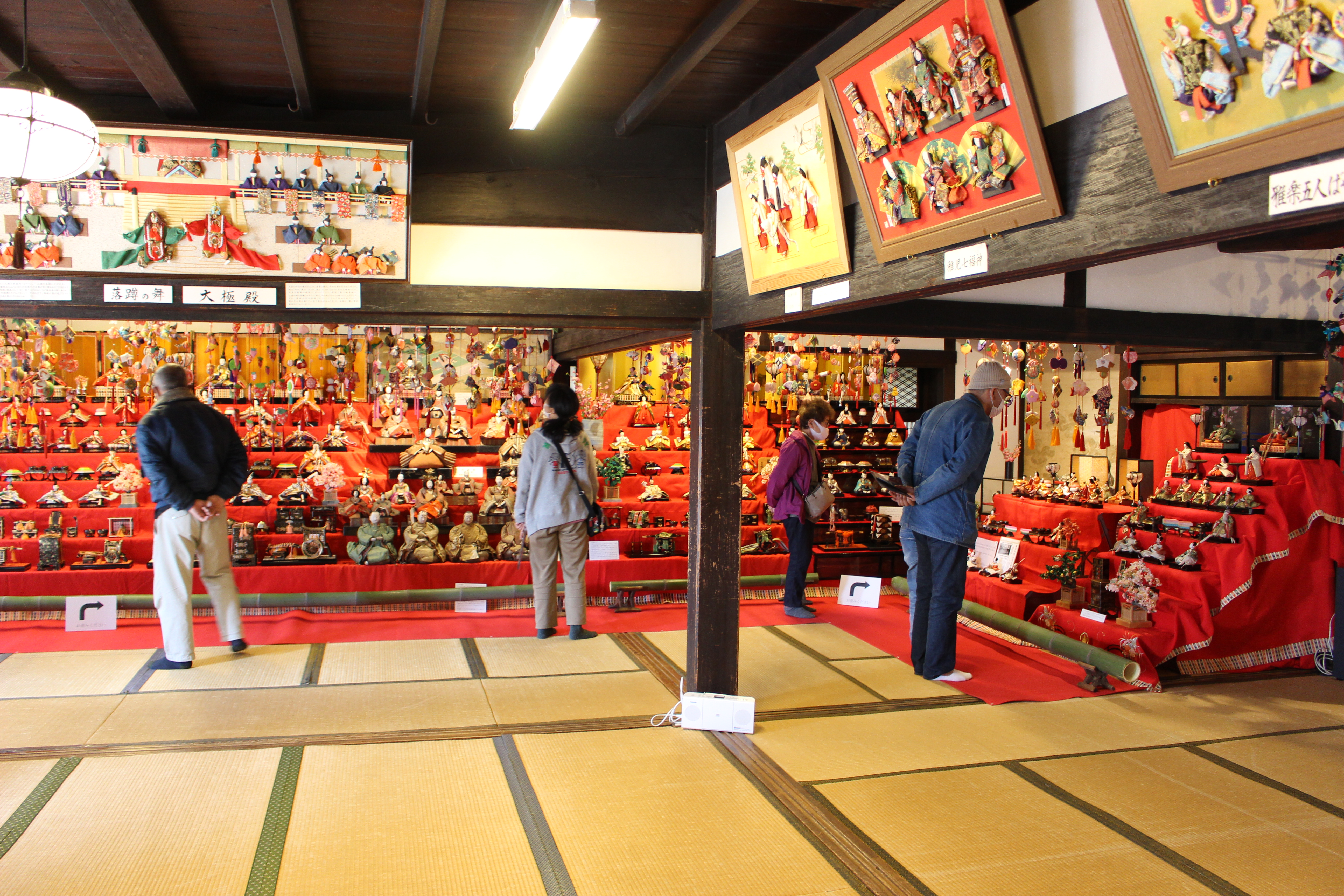 主会場である甘草屋敷では、江戸時代のひな人形「享保雛」から現代までのひな人形数百体と豪華な御殿飾り、吊るし飾り等が展示され、色彩も形状も様々なひな飾りを楽しむことができます。今年は密を避けるため、主屋の他に小屋にもひな飾りを展示しています。