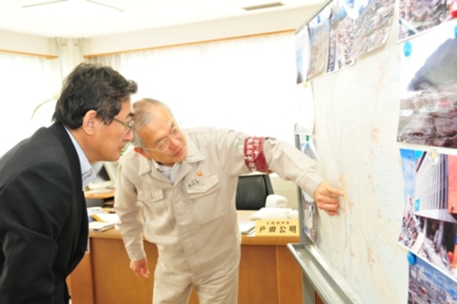 このような中、派遣を終えた職員からの報告を受け、市長として、自ら被災地の現状と業務内容を確認する必要性を感じ、平成23年6月20日から22日までの3日間、東日本大震災で被災した、岩手県大船渡市へ訪問を行うこととしました。