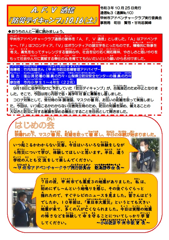 令和3年10月16日(土)に「防災デイキャンプ」を開催しました!
