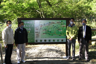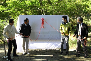 オルビス株式会社取締役、オイスカ山梨県支部会長、甲州市長、甲州市議会議長の4名で案内板の除幕を行いました。
