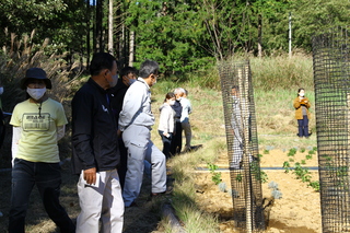 式典後には、オイスカ山梨県支部事務局長の案内のもと参列者の皆様で林内散策を行いました。
