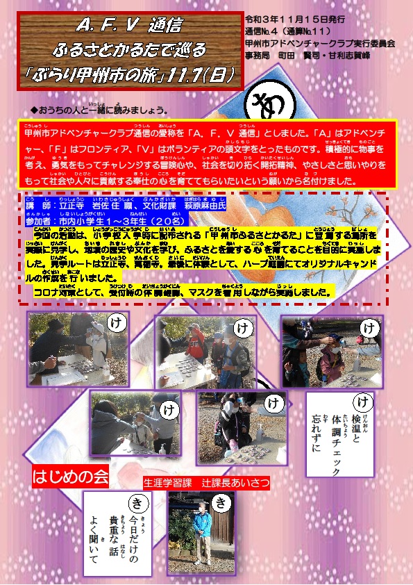 令和3年11月7日(日)にふるさとかるたで巡る「ぶらり甲州市の旅」を開催しました!