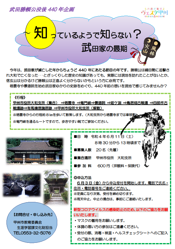 栖雲寺や景徳院を始め武田家ゆかりの史跡をめぐり、