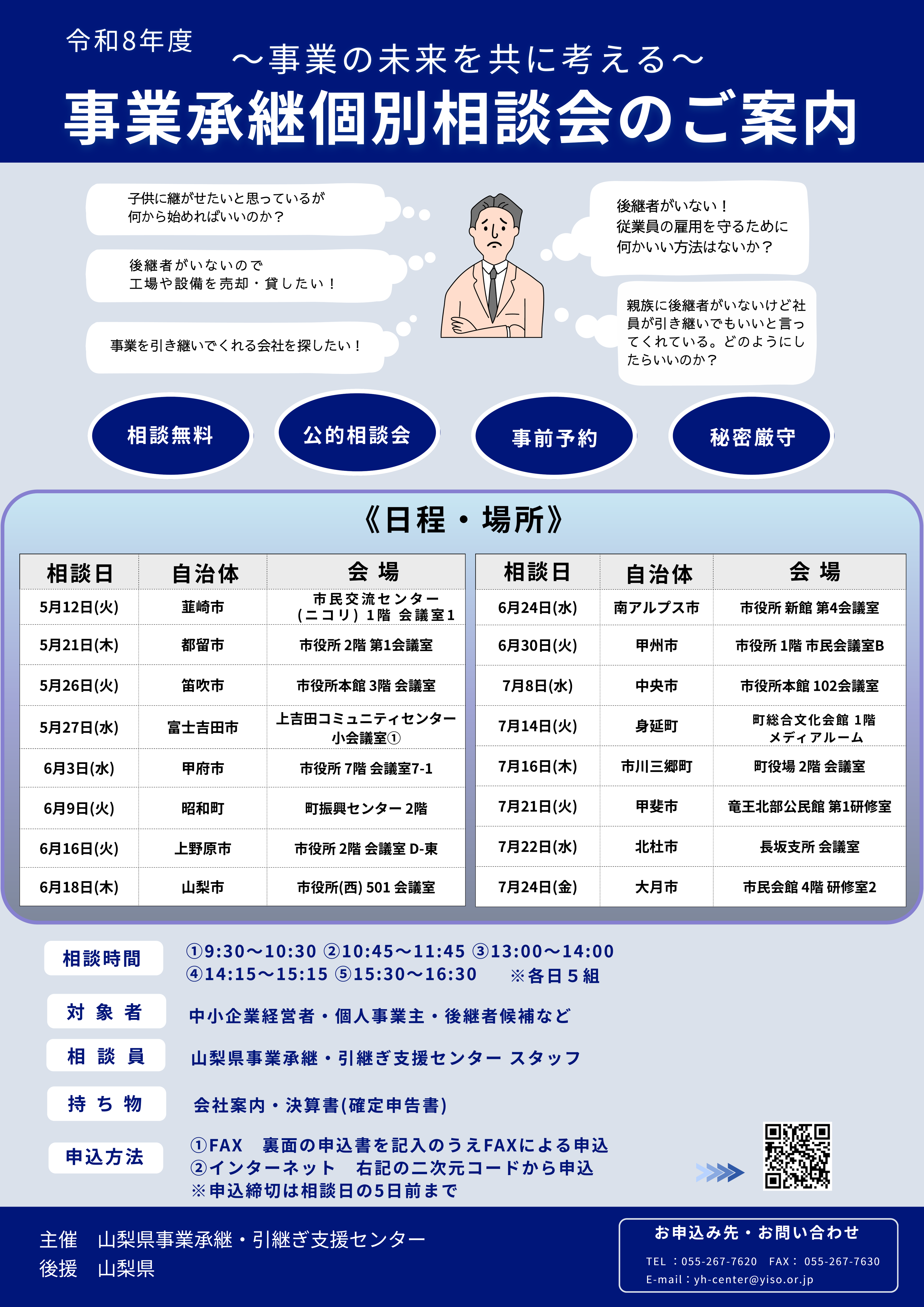 山梨県事業承継・引継ぎ支援センター 055-267-7620