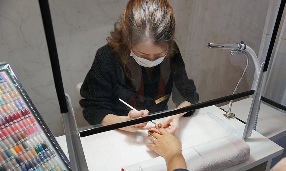 仕事のやりがいは、やはりお客様が喜んでくださることですね。お客様が私がデザインしたネイルを気に入ってくださり、指先が輝くことによって笑顔になることがとても嬉しいです。